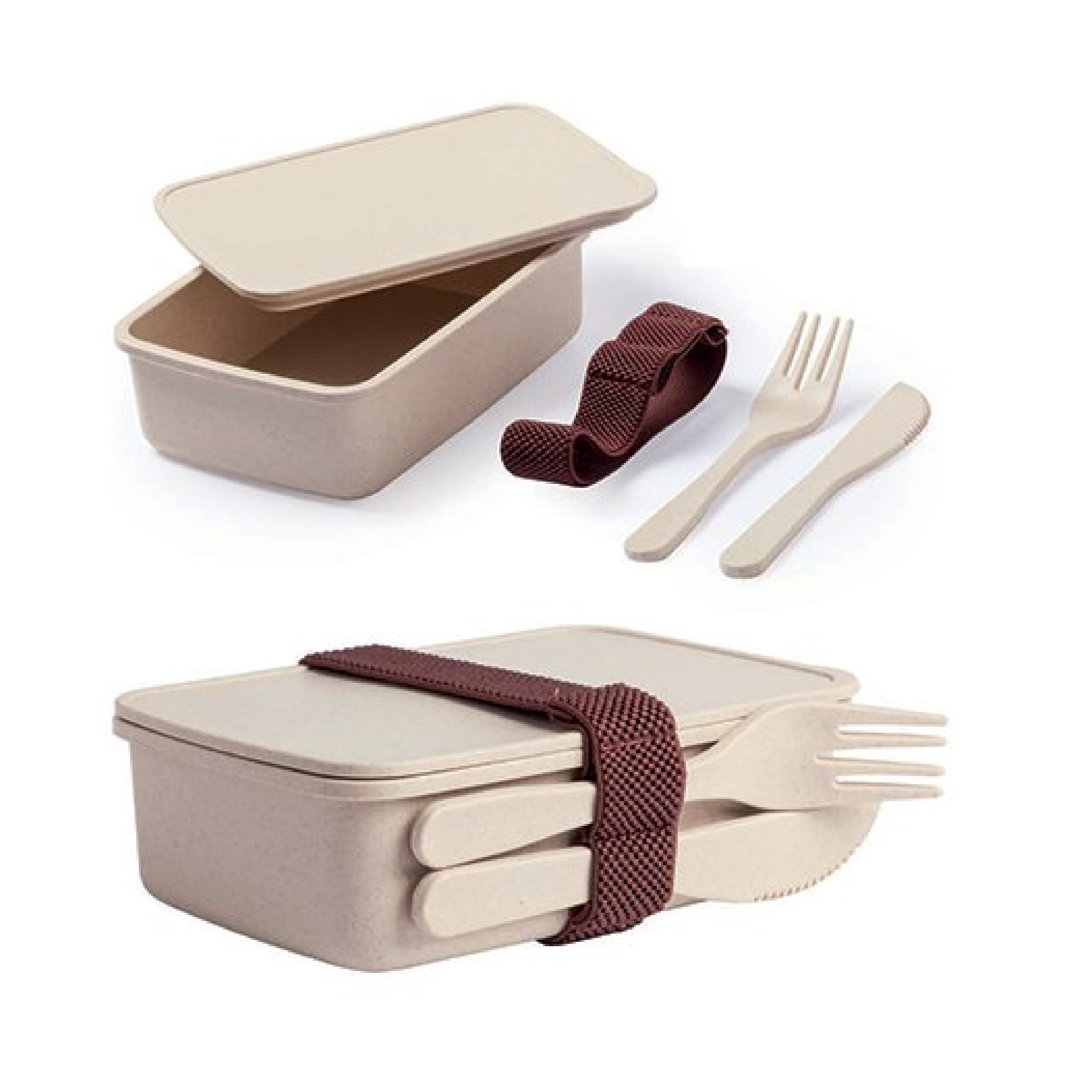 Wheat Straw Material Lunch Box with Knife and Fork