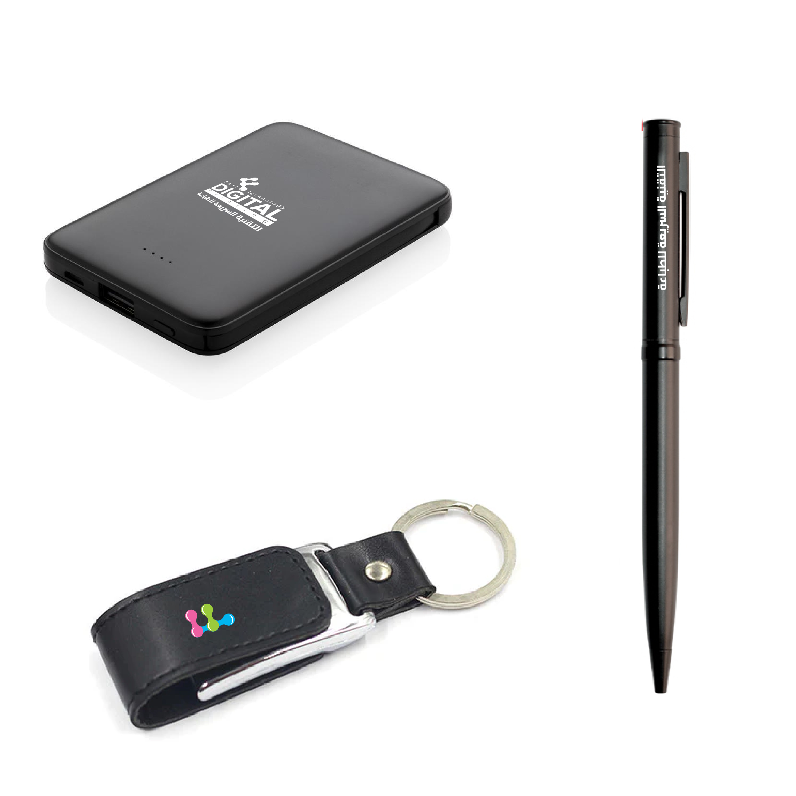 This corporate gift set Contains total of 3 Products packed in a black gift box are stylish better presentation