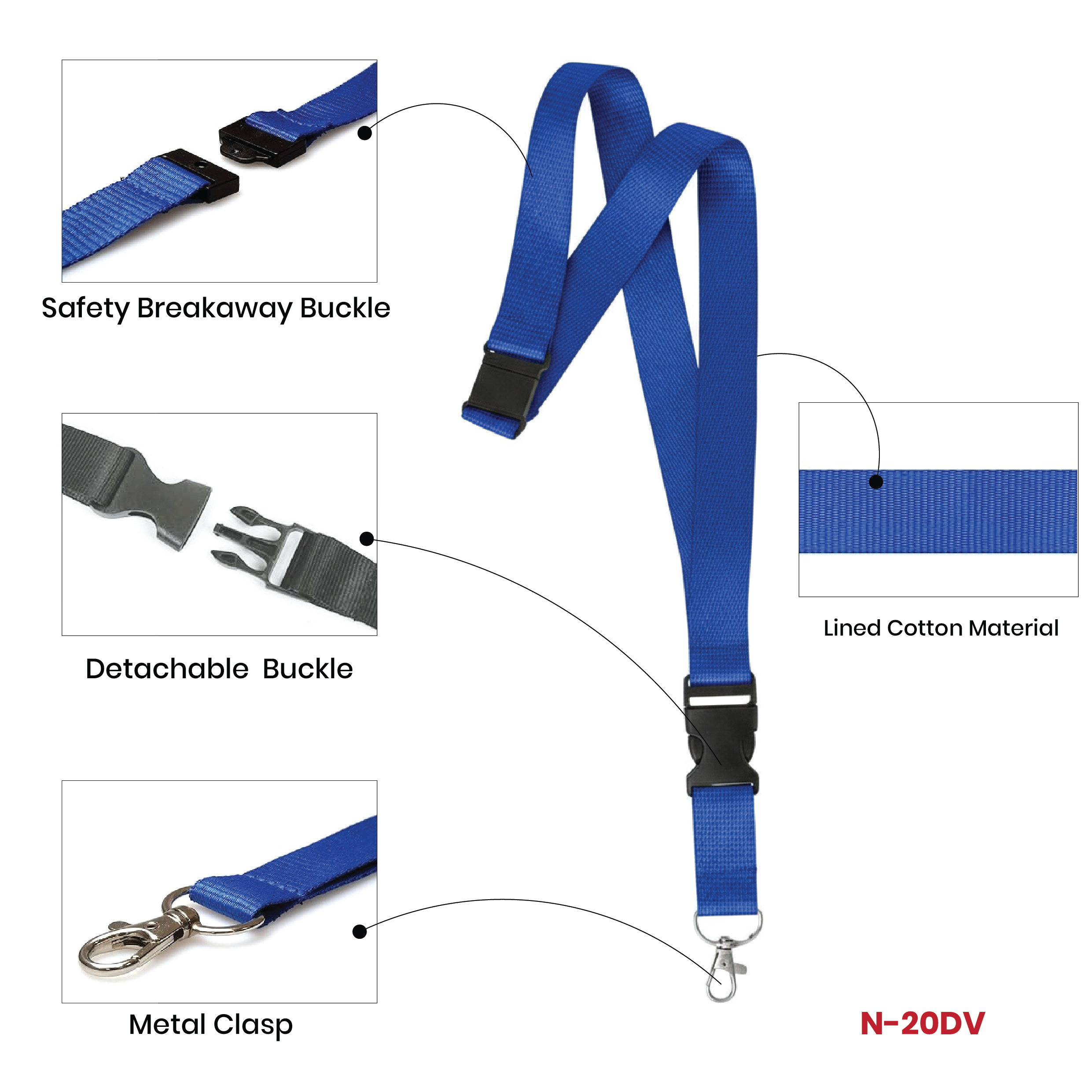 Polyester Lanyard Blue Ribbon & 2 Plastic Lock With Steel Holder